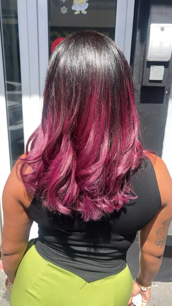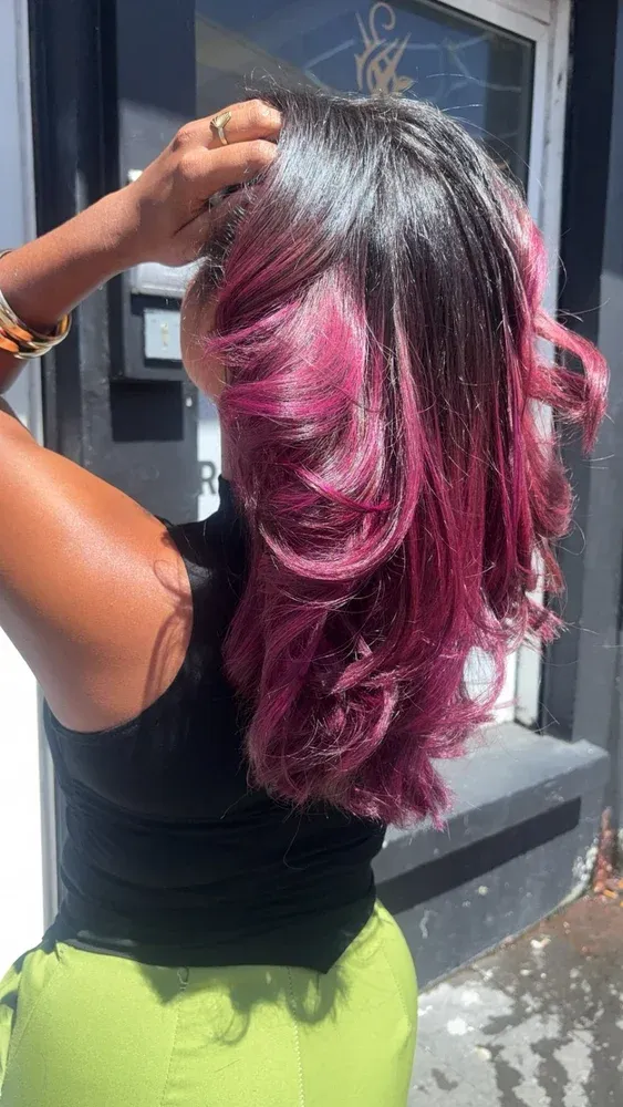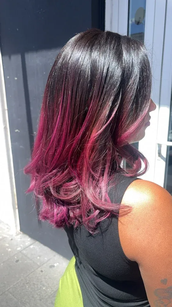 La coloration violine flashé est une tendance audacieuse qui ne passe pas inaperçue. Ce choix de couleur apporte une touche de mystère et de sophistication à votre look. Que vous souhaitiez un changement radical ou une simple touche de couleur, notre équipe de coloristes professionnels est là pour vous conseiller et réaliser une coloration sur-mesure, respectant la santé de vos cheveux.