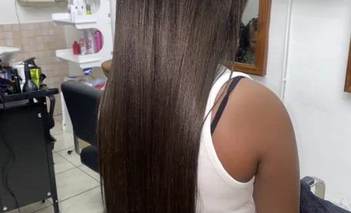 FANTASIA HAIR BEAUTY prestation effectuée sur une cliente pour une brushing droit au Port votre salon de coiffure au Port, vous accueil avec ou sans r...