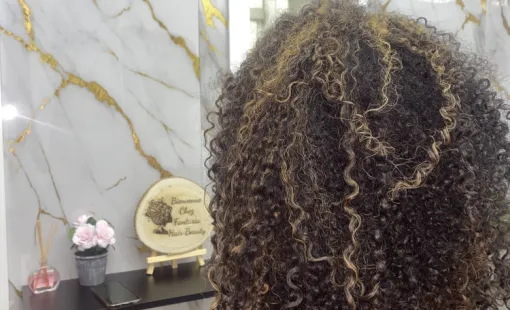 FANTASIA HAIR BEAUTY prestation effectuée sur une cliente pour un touching bouclé sur femme au Port votre salon de coiffure au Port, vous accueil avec...