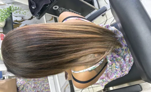 FANTASIA HAIR BEAUTY prestation effectuée sur une cliente pour un balayage et un brushing droit au Port Votre salon de coiffure au Port vous accueil a...